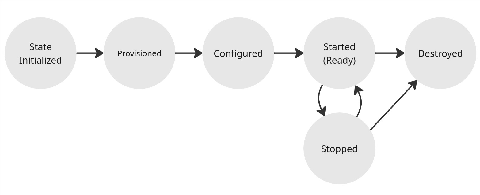 An Instance State is initialized with various Inputs (e.g. provider, region, instance type and specs, etc.). On initialization, the instance is: